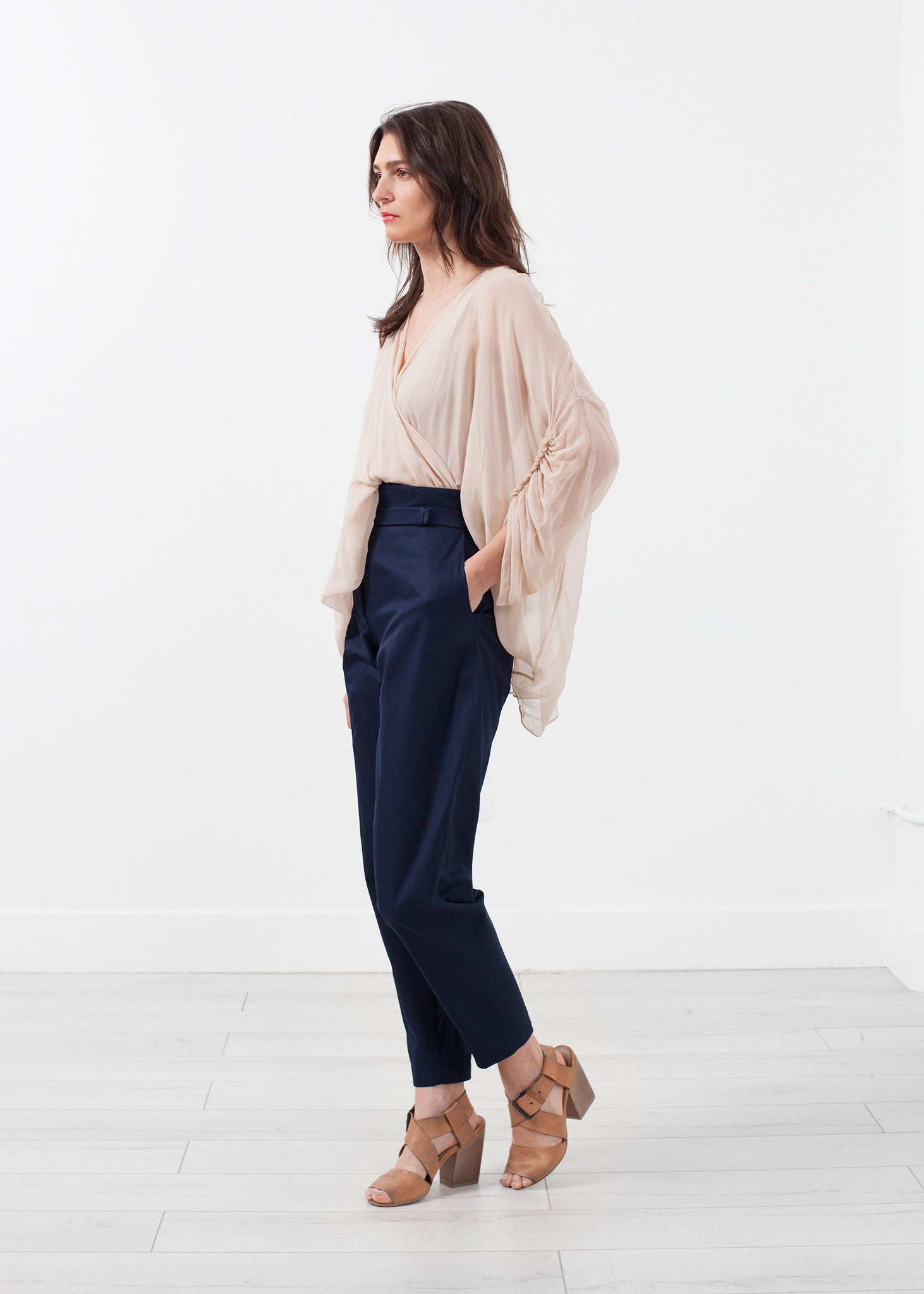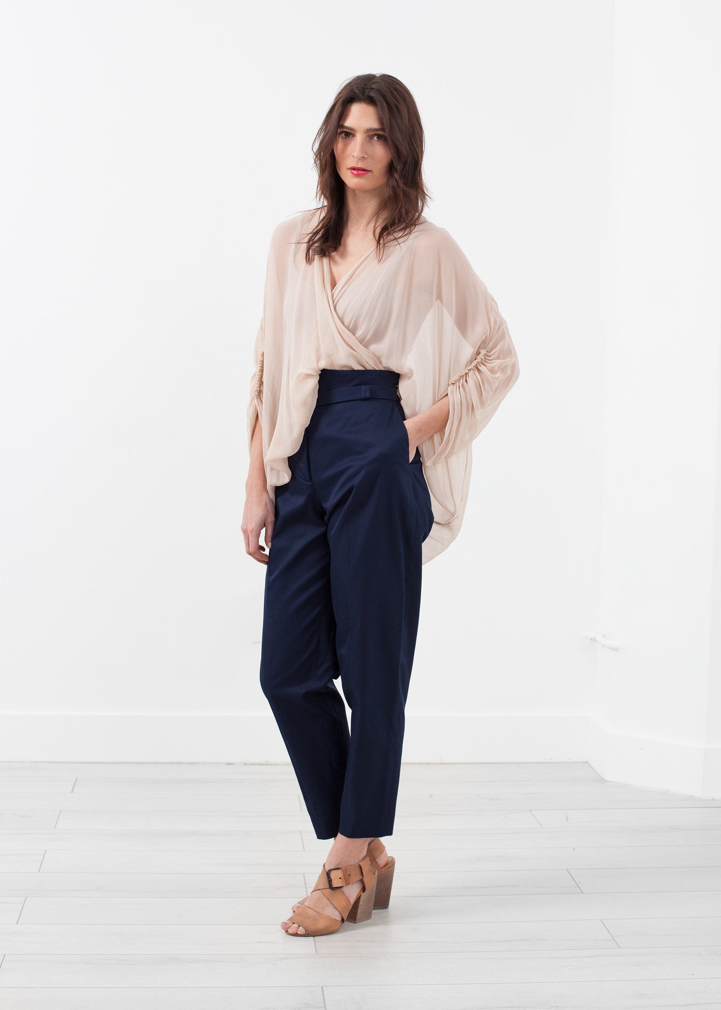 Louiza Babouryan offers a sweet cacophony of artistic vision for her Spring/Summer 2015 line. Dreamy pieces paired with flowing silhouettes invites to indulge on that delicious side. The Twist Top is the needed finish for a night out. Deep V-neckline. Delicate gathers on sleeves. Color Sand. 100% Silk. Made in U.S.A. Lana is wearing an X-Small.