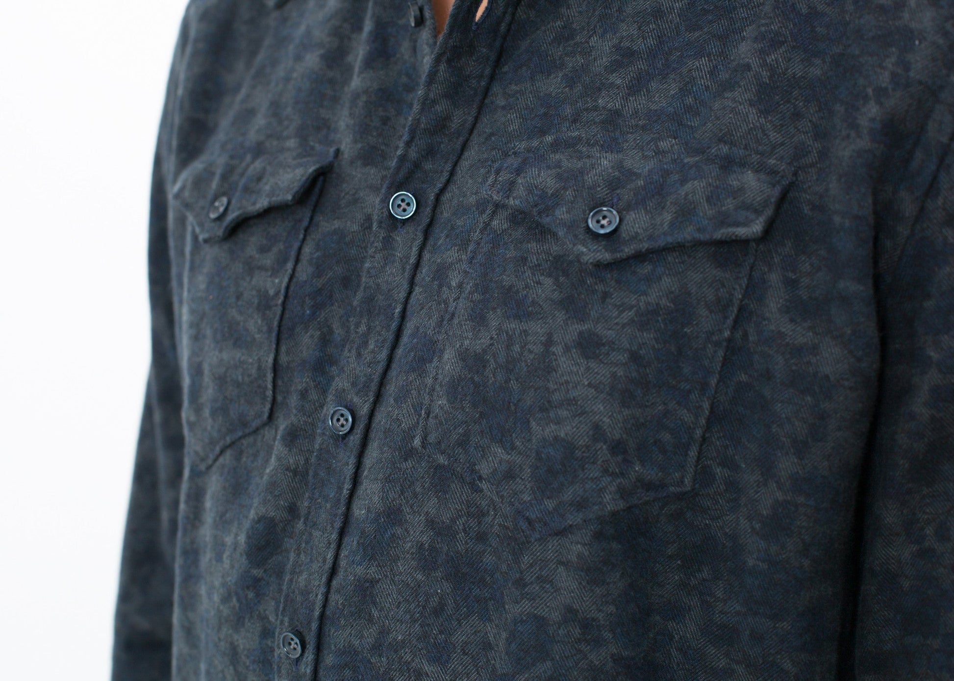 A Western style shirt gets a sweet touch with an all over floral motif. Two flap pockets at the chest and a classic western style yoke finishes the back. Aglini. Color Dark Hash Floral. 100% Cotton. Made in Italy.